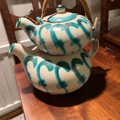 Kaunis, ehjä ja sisältäkin siisti teekannu. Lasitus ehjä, ei lohkeamia.
