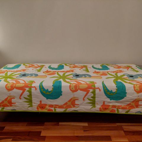 Vaaleanpunainen lasten päiväpeitto satuhahmoineen. Hyvä kunto.