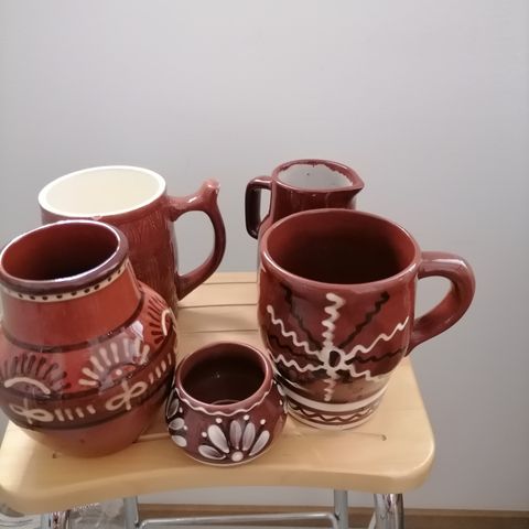 Tarjoilukulhot 10e/kpl, tuikkuastiat 5e/kpl. Siniset mukit 10e/kpl. Mukeihin kuuluu myös lautaset, unohtuivat kuvasta. Postikulut lisään jos lähetän.
