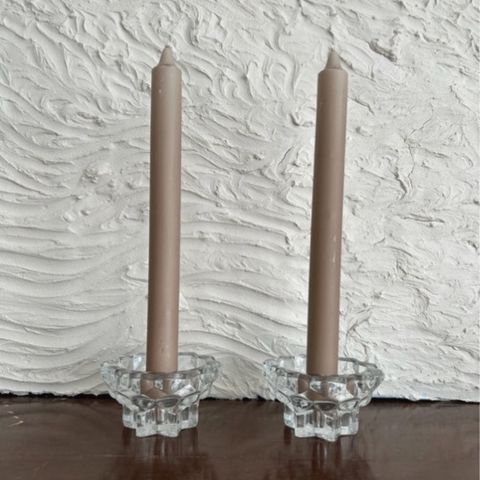 Kristalliset kynttilänjalat, myydään yhdessä. Ehjät, siistit, kork.22cm . Nouto Vaasan keskustasta, käteismaksu.
