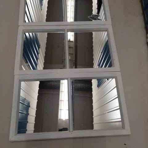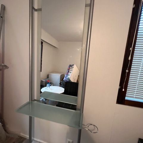 Kampaamon peilit 3 kpl ,tukevat taustalevyt ,joissa tyylikäs pikkunen "harjahylly",puusepän tekemän kolmio runko-osan kanssa näistä saa tyylikkään ,siistin ja edustavan peilikolmion kampaamoon tai vaikka vaateliikkeeseen ym,tämä ollut kampaamossa ,nyt halvalla koko paketti 3 peiliä ja kolmio teline peileille 110e/ asiallinen tarjouskin?