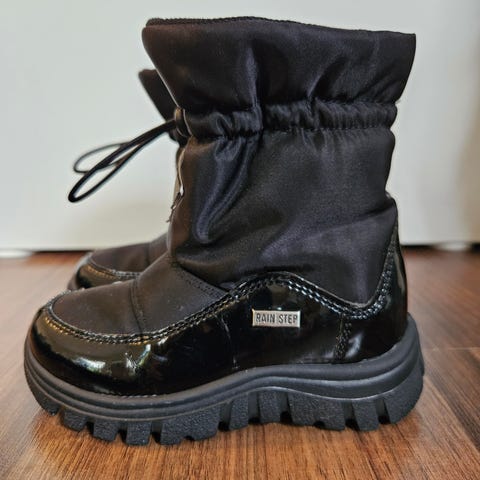 Naturinon upeat tummanruskeat nahkaiset Rain Step välikausi-/talvisaappaat valkoisella villavuorilla. Koko 24, pehmeällä mitalla sisämitta noin 15cm, eli vastaavat hyvin kokoaan. Meille uutena ostetut kengät ja pari kertaa käyneet jalassa kyläreissuilla, näiden kunto on uutta vastaava, ei käytönjälkeä. Näiden ovh on 95e. Italialaiset, vettä kestävät/hylkivät nahkakengät kylmiin syys/kevätpäiviin ja pikku pakkasille.