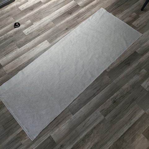 Myydään vaalean harmaa verhokappa. Verhotangolle kuja yläosassa. Solmimis nauhoilla saa säädettyä sopivan korkeuden. Leveys n 138 cm. Ehjä ja siisti