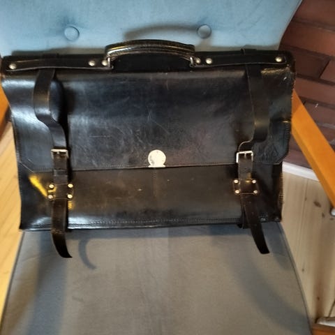Tunnettu merkki 80-90 luvulta, Laadukas, Erinomaisessa kunnossa, tukeva, vääristää musta, kaikki vetoketjt kunnossa, täys nahka, suutarin huollon jälkeen, (puhdistettu ja käsitelty veden hylkivän aineella).