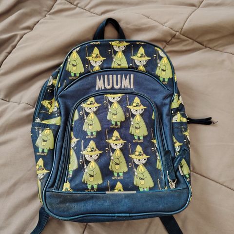 Moomin characters leimalla oleva sininen Nuuskamuikkunen kerhoreppu. Reppu hyväkuntoinen,mutta ollut kyllä käytössä.