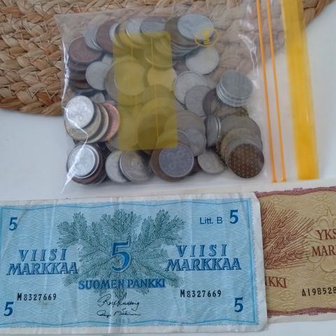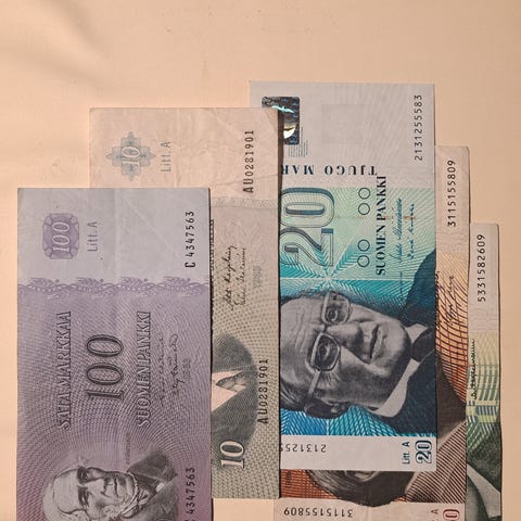 Myydään tarjousten perusteella 4 kpl 1 markan ja 2 kpl 20 markan seteleitä.