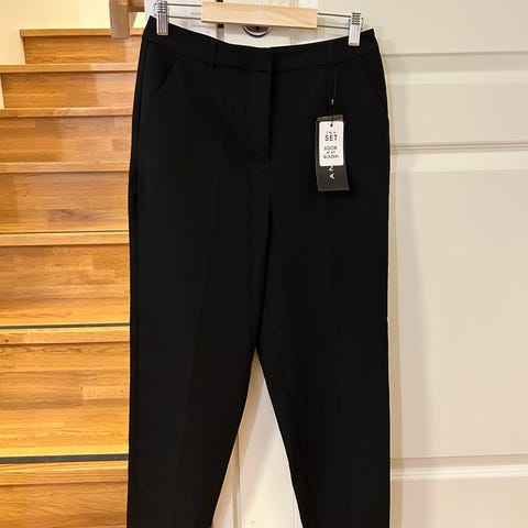 Nyt myynnissä kauniit housut miellyttävän pehmeää 54%puuvilla-46%polyesteriä. Vähällä käytöllä olleet. Paljon kivoja, mutta hillittyjä yksityiskohtia. Vetskari- ja nappikiinnitys, vyölenkit. Suorat lahkeet. Matala vyötärö.