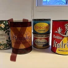 - parhaat päivänsä nähneet Pauligin klassikko kahvipurkit, molemmat olleet vuosikymmeniä käytössä; ruostetta, kulumaa ja naarmuja, eli ajanpatinaa ei puutu...8eur/kpl tai yhteensä 14eur/2kpl
