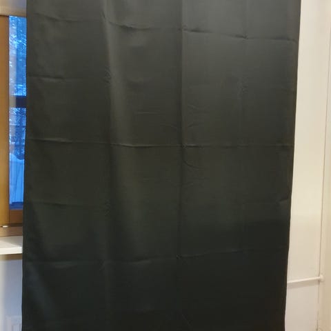 Eli ikkunan molemmille puolille pimennysverhot. Juuri pestyt.