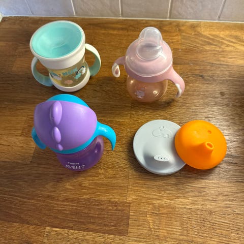 Kaksi nokkamukia, sininen Nuk merkkinen on hyväkuntoinen ja hinta 1e. Vihreästä puuttuu imuosa, tämän saa kaupanpäälle halutessa.