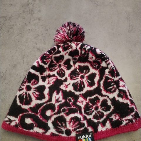 Hyväkuntoinen suomalaisen valmistaja Muka•van valmistama pipo. Materiaali 100 % luomupuuvillaneulos. Rusetti on helposti irroitettava, jolloin piposta saa yksinkertaisemman. Pipon reunakäänne on ommeltu kiinni alla olevaan pipoon vain edestä ja takaa, joten pipon korkeutta voi säädellä. Musta puuvillainen trikoovuori. Kokomerkintää ei ole, ympärysmitta n. 57 cm, neulos on joustava.