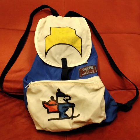 Lahti 1997 World Games virallinen kisatuote reppu, vähäisiä käytön jälkiä, valmistaja KB-tuote Oy, koko n. 46 x 33 cm, official product.