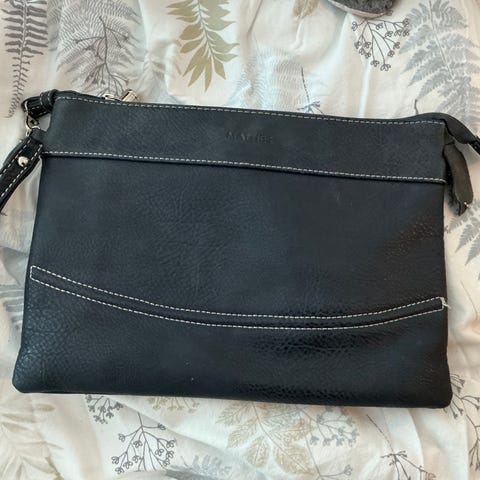 Punainen olalla menevä laukku, malliltaan sopii myös pieneksi lentolaukuksi. Kolme pienempää taskua varsinaisen tilan lisäksi. Irrotettava olkahihna.