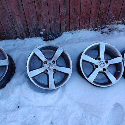EMP 15" Alumiinivanteet 4x114,3 jaolla (sopii moneen autoon Nissan YM...) koko 6,5x15 keskireikä 6,6 ET 38. Päällä renkaat 2 kpl jolla ajaa vielä jonkin matkaa ja 2 sakoilla. Vanteet on kolhuttomat sekä suorat ja kaikissa on keskikupin paikoilla.