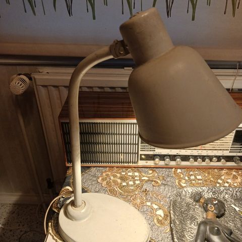 Myydään harmahtava simpukankuori pöytävalaisin. Korkeus 48cm, halkaisija 19cm.