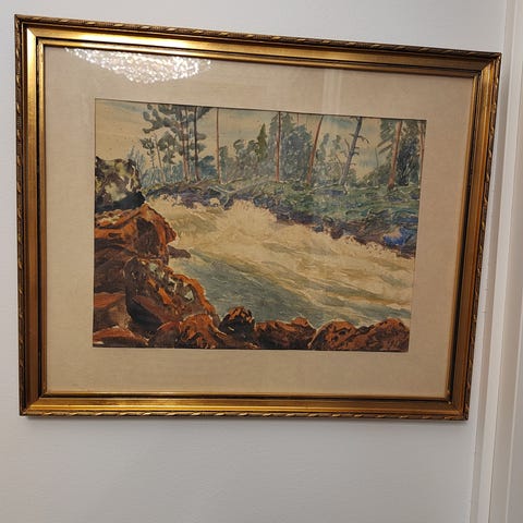 Matrikkelitaiteilija Niilo Latvan (1898-1949) vesivärityö, signeeraus Niilo Latva 1924.
