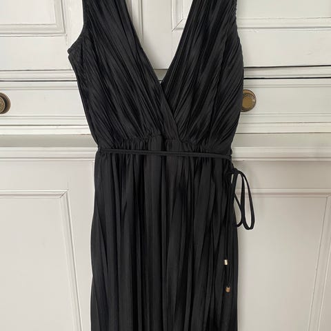 Myydään uusi, musta, pitkä, kapea juhlamekko. Koko M. Näyttävä mekko, jossa kaunis leikkaus ja upeat yksityiskohdat. Isot kaulukset ja napitus kokomatkalla. Osan napeista voi jättää auki jolloin saa pitkän halkion. Mekossa on vuori. Hiha-aukot on halterneck-tyyliset. Kainalo-kainalo n.50cm, vyötärö n.44cm ja lantio n.52cm. Mekon pääliskangas laadukas 100% polyesteriä ja vuori laadukasta 100% asetaattia. Savuttomasta kodista. Postikulut 9euroa. Yhdistelen postikuluja. En käytä ToriDiiliä.