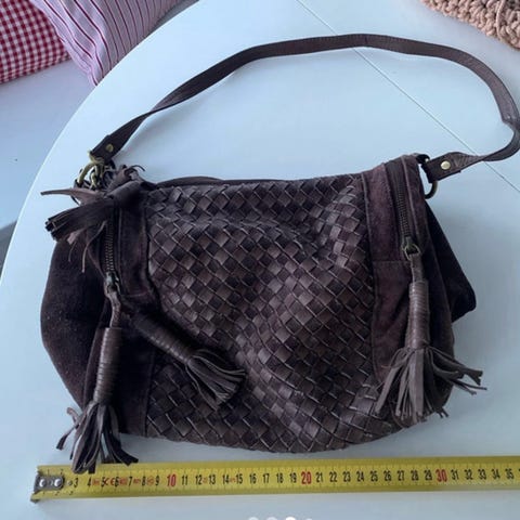 Uusi tilava sini/ruskea kangaskäsilaukku