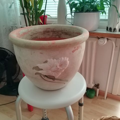 Myydään kolme keraamista mustaa kukkaruukkua. Kaksi samanlaista yksiväristä, joissa koristelautanen mukana ja yksi kultakoristeinen. Missään ei reikää pohjassa, eli ovat suojaruukkuja. Kaikki käytössä olleita, hinta yhteensä 2e.