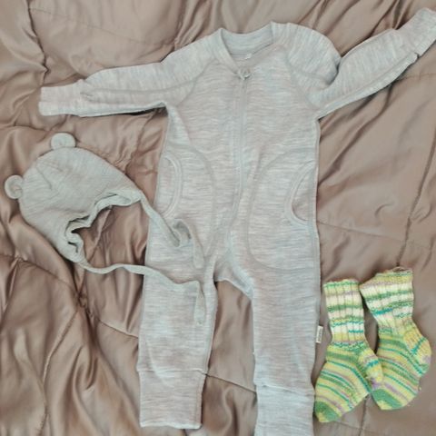 Äitiyspakkauksen villahaalari. Pientä haitua, muuten hyvä kunto.