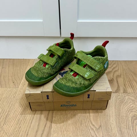 Viime kesänä ostetut paljasjalka tennarit. Ei sopineetkaan lapsen jalalle, kokeiltu vain muutamia kertoja ulkona.