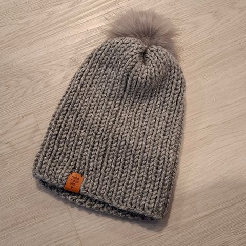 Käsin neulottu iso tupsu pipo