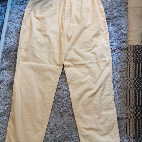 Punaiset Housut, koko 38, edessä vetoketju, nappi ja taskut, vyötäröllä takana sivuissa kuminauha rypytys, materiaali 55%pellavaa, 45%puuvillaa, vyötärön mitta 37,5 cm edestä mitta ja venutettuna 40.5 cm, puntin mitta haaroista puntin suuhun 77 cm, siistit