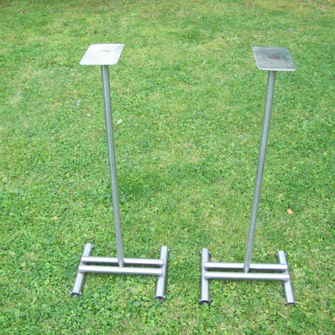 Jämerät kaiuttimien jalustat. Korkeus 25cm. Alaosa <-30cm-> Yläosa <-25cm->. Neljä reikää kiinnitykseen.