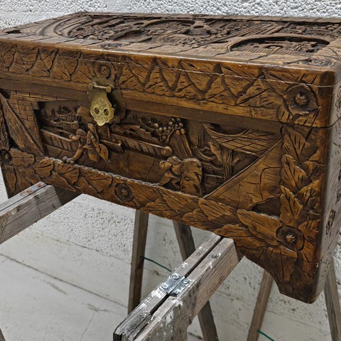 Vanha upea koristeellinen tammilankku, leveys 87,5 cm, korkeus 22 cm ja paksuus 24 mm. Tuunaajalle ja puusepälle oivaa materiaalia esim. sängynpäätyyn, puusohvaan, seinälle, oven, ikkunan tai kaapin päälle jne. Nouto ja posti sopii, postikulu pituuden mukaan 22,90 e (XL-paketti).