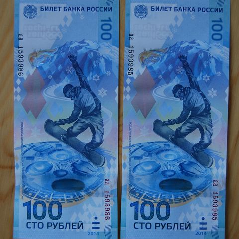 100 Ruplaa 2014 Sochi Juhlaseteli Venäjä