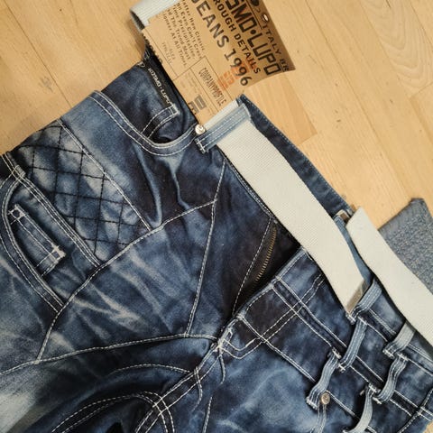 Myynnissä miesten upeat aidot ja alkuperäiset KOSMO LUPO -farmarit. Housut ovat sangen HYVÄKUNTOISET ja ovat olleet vain hieman käytössä. Kyseessä on yksi laadukkaimmista, halutuimmista, suosituimmista ja parhaimmista miesten farkkujen valmistajista