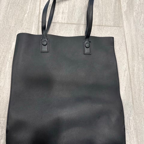 Siisti, tekonahka pintainen laukku, jonka sisällä vetoketjullinen pieni pussukka esim avaimille. Kiristys naruilla.
