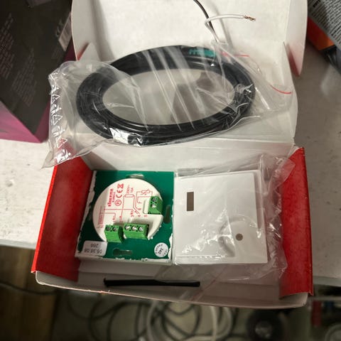 Etherma e2003 vikavirtasuojallinen lattialämmitystermostaatti ja anturi. Anturijohto 170cm. Käytetty, mutta toimiva.