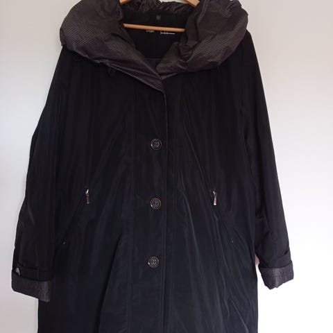 Uusi huppullinen takki,viinipunainen väri,kiiltävä pinta,merkki "Luhta",sisätasku,pituus 96sm.