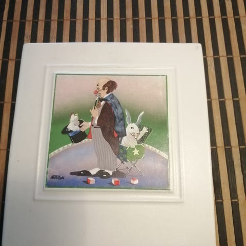 Tämä keraaminen taulu on yksi taiteilija Matti Louhen Kermansavelle maalaamasta Sirkussarjasta, seinälaatta/keramiikkataulu - "Sirkushauva", korkeus 20,7 cm ja leveys 19,3 cm. Siisti ja todella hyväkuntoinen harvinaisuus. Toimituskulut lisätään, ei toridiiliä.