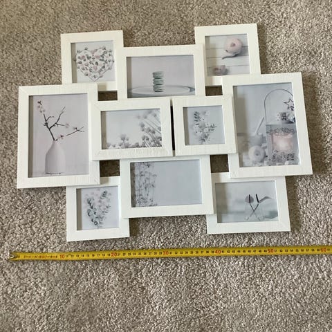 Leveys 29cm, korkeus 34cm ja kuvakehys 30x20cm.