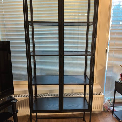 Lasihyllyisen kirjahyllyn tasoja. Lasien reunat ja kulmat on pyöristetty. Muutamia kulumajälkiä/naarmuja saattaa löytyä joistakin, mutta muuten ehjiä ja siistejä.