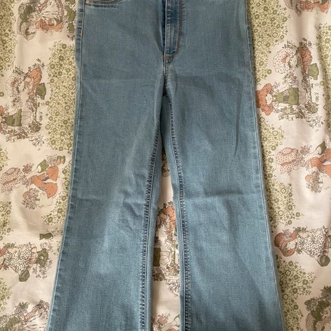 Tarjolla uudet, Amerikasta 2000-luvun alussa ostetut, käyttämättömät kuvan farkut.
