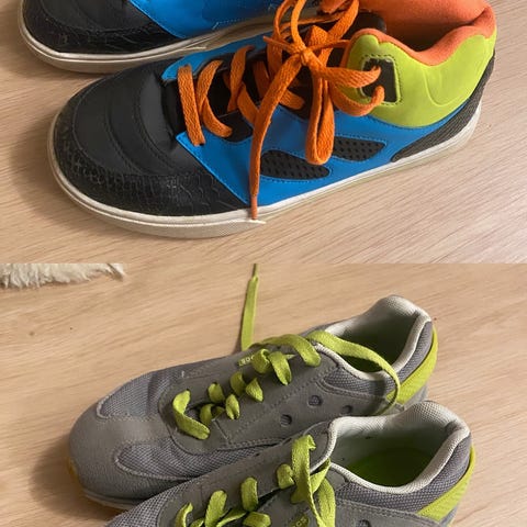 Myydään Niken kahdet lenkkarit, punaiset Converset sekä keltaiset Crocsit.