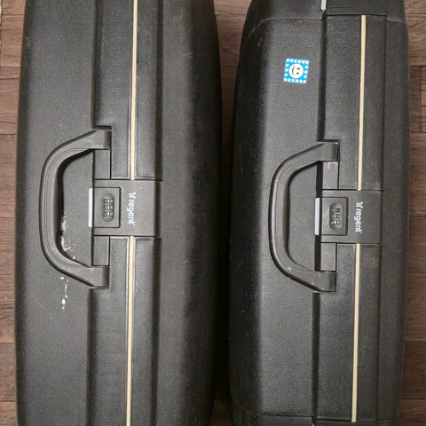 Myyn tukevan kovamuovisen Regent-matkalaukun. Alla renkaat. Koko noin 20x52x70 cm.