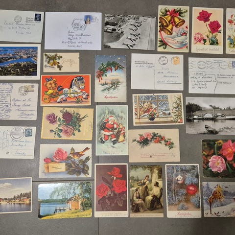 Tarjolla kuvassa näkyvä Turku-aiheinen postikortti Eerikinkadun ja Brahenkadun kulmasta. Leiman päiväys 26.09.1955 (2€) sekä 2 kpl uusia Turun Lyseon korttia vuodelta 1974 (1 €/kpl). Turku-seuran julkaisema 7 kortin sarja (uusia, 5€) sekä 9 kpl Turun Myyntimiesten sauna Ruissalon Kuuvassa (uusia, 1 €/kpl). Postitus kirjeenä onnistuu.