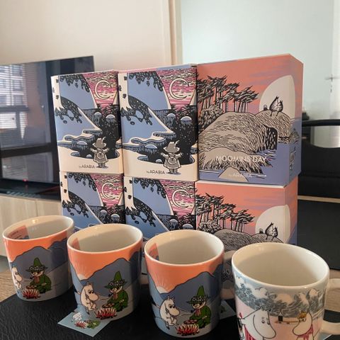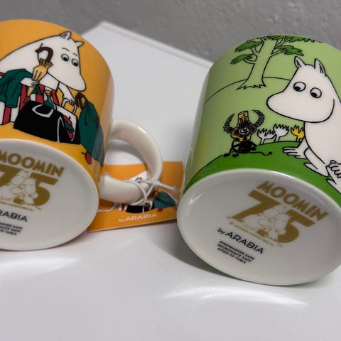 Täysin käyttämättömät, tarralliset Muumimukit. Tilavuus 3 dl. VARATTU