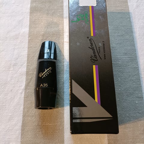 Tenorisaksofonin suukappale. Vandoren V16 isolla kammiolla T6 aukko, 40's.