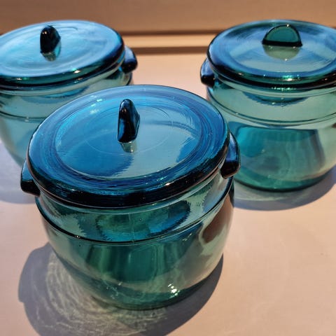 Myyn vanhan Riihimäen lasin valmistaman voipytyn. Paljon on käytetty aikanaan ja käytönjälkiä löytyy. Tilavuus 2 litraa. Noutona myyn.