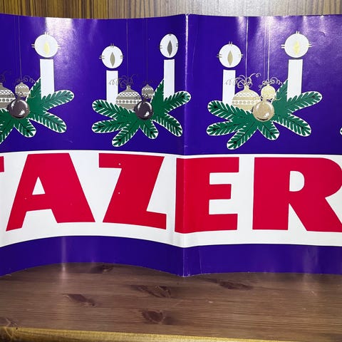 - "God Jul, med julgott från Fazer" -juliste, koko n. 30 cm x n. 40 cm, uusi avaamattomassa paketissa oleva julisteharvinaisuus.