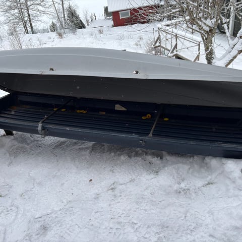 Vanha mutta toimiva . 210x50x28cm .Kattotelineet tulee mukaan. Yht. 0503205063