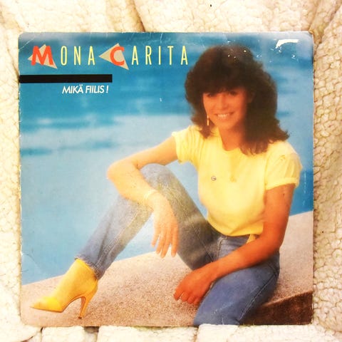 Etsin myös Mona Caritan koelevyjä (singlet ja LP:t). Siis valkoetikettisiä levyjä.