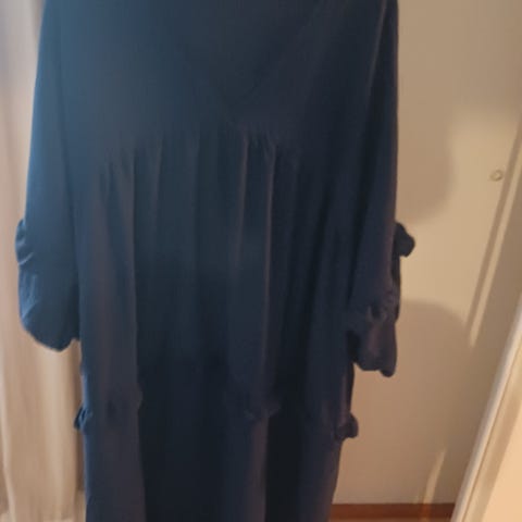 Kaunis hyväkuntoinen tummansininen mekko. Kainaloiden alta on 53 cm, mutta rinnoille enemmän tilaa koska avonainen leikkaus. Pituus 116cm.