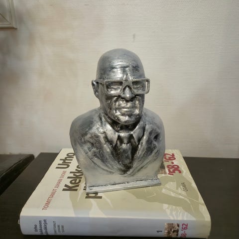 Uno Aron vuoden 1959 kipsinen patsas, korkeus 30cm, jalusta 8x9 hinta 90e