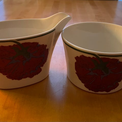 Myydään vain pari kertaa käytetty Illusia kermakko, hp. 15 euroa. (Kuvassa oleva sokerikko on jo myyty.)